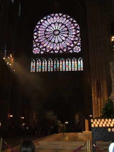 I guess what is most fascinating about them for me is not their meaning, or their placement for bringing in light, or even their beauty. What really fascincates me is their sheer magnitude, and how they could have been constructed. Much of the tracery (the inside design) is made from stone, and the glass would have been made by hand. So, how on earth were they able to build these things, lift them into place (or carve them in place), and give them enough strength to stand the test of time (and in some cases, the test of WWII bombing raids), and not simply crumble like lacework. The stone masons of that time truly were artisans like the world has never seen since.